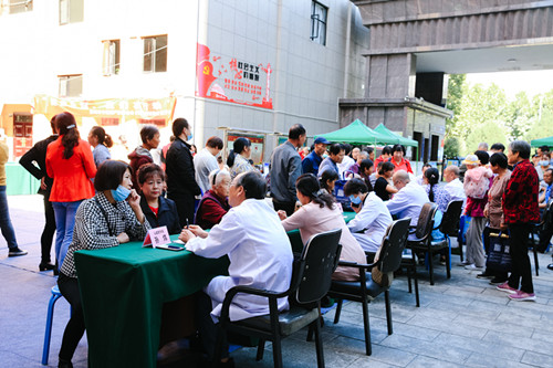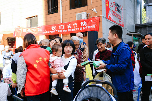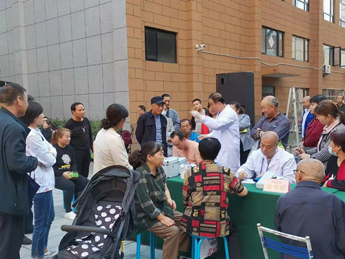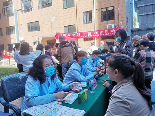 上午9:40,义诊健康咨询和文艺宣传活动的启动仪式正式开启。启动仪式结束后,原地举行演出活动,演出由宝鸡市延安精神宣传队主演,宋亚妮主持。穿插着文艺宣传活动,义诊团本着“上医治未病”“早发现、早诊断、早治疗”的原则,他们还为居民们提供了关于口腔卫生和用眼卫生的意见。上午10:40,演出结束后,义诊专家在各自义诊席位开始义诊健康咨询,义诊开始火热进行,前来咨询问诊的居民络绎不绝,大家纷纷在义诊团前倾诉着困扰自己的健康问题,而我们的义诊团成员们也十分有耐心,不仅为居民详细解答,更进一步提出了专业的就医用药意见,还细心安慰着每一位患者,给予患者精神上的支持和抚慰。义诊活动的气氛十分热烈,有的科室的咨询位置前已经排起了小长队,更甚至有居民呼朋引伴“抱团”前来就诊。参加义诊的工作人员,充分发挥扎实的专业功底,无论是健康咨询还是问诊检查,都耐心细致、尽职尽责的为社区居民服务。义诊活动进行中,拼搏在线登录给附近的居民免费发放药品,将健康传递到每个人的手上。