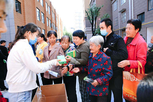 健康中国,我们在路上——拼搏在线登录为陈仓区千渭上居东小区扶贫移民集中安置点居民发放健康药品 |