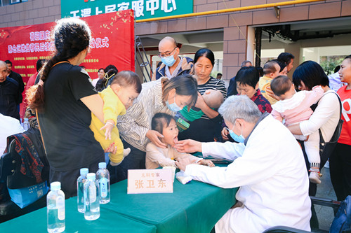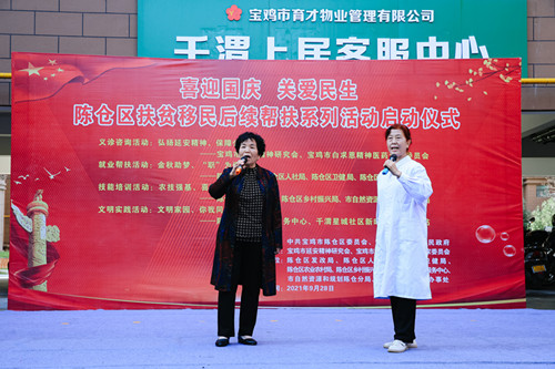 2021年9月28日上午,由宝鸡市延安精神研究会主办,宝鸡市白求恩精神医药专家委员会、陈仓区卫健局、千渭街道办事处、千渭新城社区卫生服务中心共同承办的“弘扬延安精神,保障公众健康”义诊健康咨询和文艺宣传活动在陈仓区千渭上居东小区扶贫移民集中安置点成功开展。 本次公益义诊活动由原宝鸡市政协主席、宝鸡市延安精神研究会会长张民义,原宝鸡市政协秘书长、宝鸡市延安精神研究会特邀研究员王志林,原宝鸡市食品药品监督管理局局长、宝鸡市延安精神研究会特邀研究员、宝鸡市白求恩精神医药专家委员会名誉主任委员韩满奎,宝鸡市延安精神研究会秘书长陆军以及宝鸡市延安精神研究会特邀研究员、宝鸡市白求恩精神医药专家委员会主任委员、儿科主任中医师张卫东领队,参加义诊活动的专家共有14人。